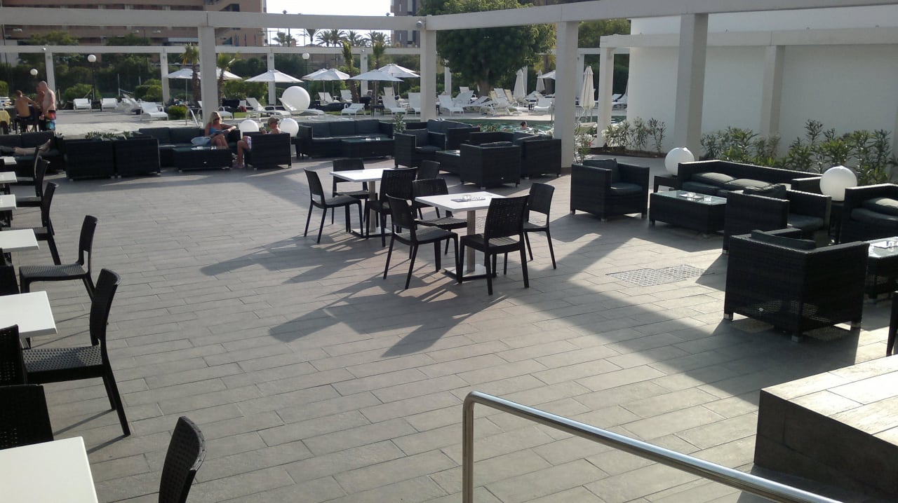 Neu gestalteter Loungebereich am Pool mit Bar