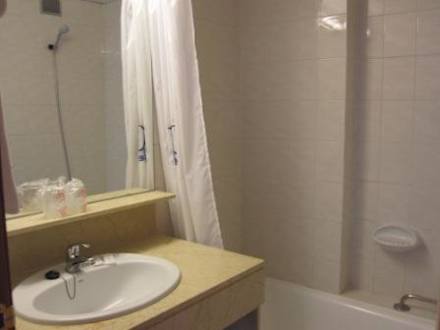 Waschgelegenheit, Wanne.WC ist auch mit drin. Alles sauber, aber:Zu zweit wird's eng.