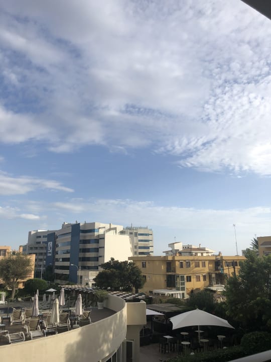 Aussicht auf die Terasse mit Liegen und Umgebung