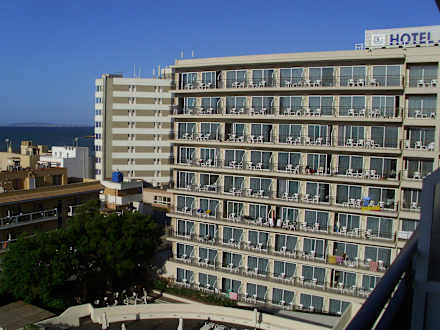 vom Balkon aus gesehen, der andere Block des Hotels