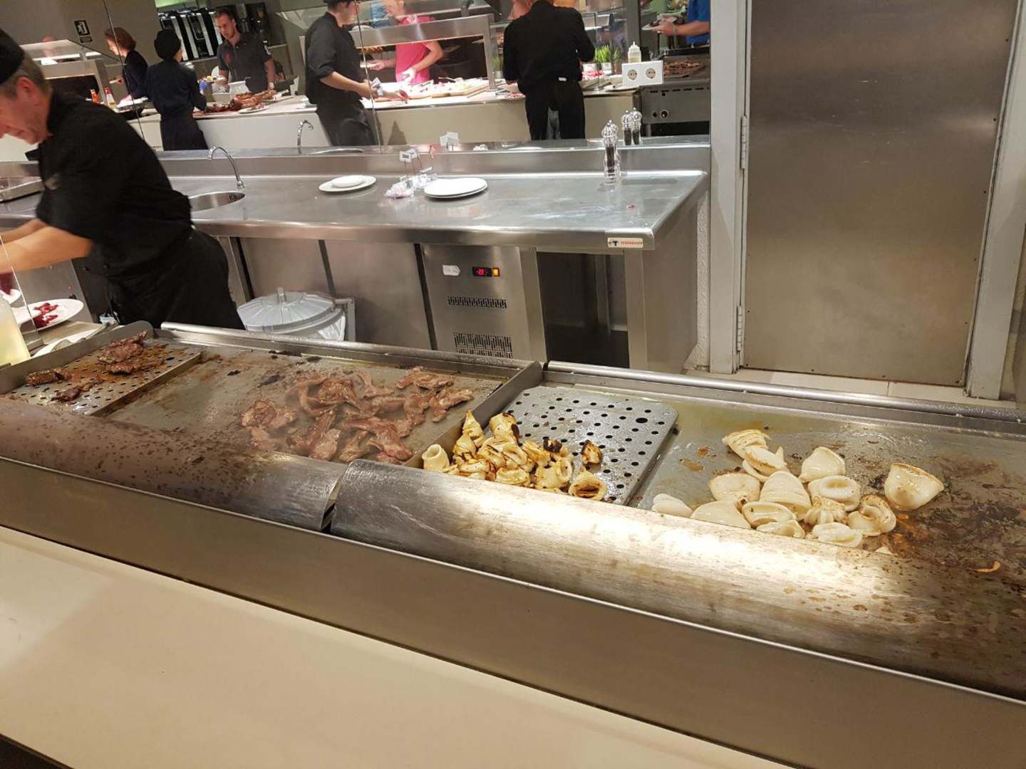 Frisch gegrillte Sepiaringe und Fleisch
