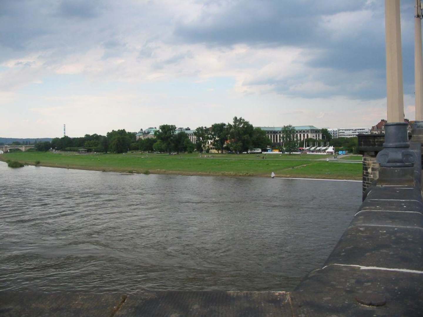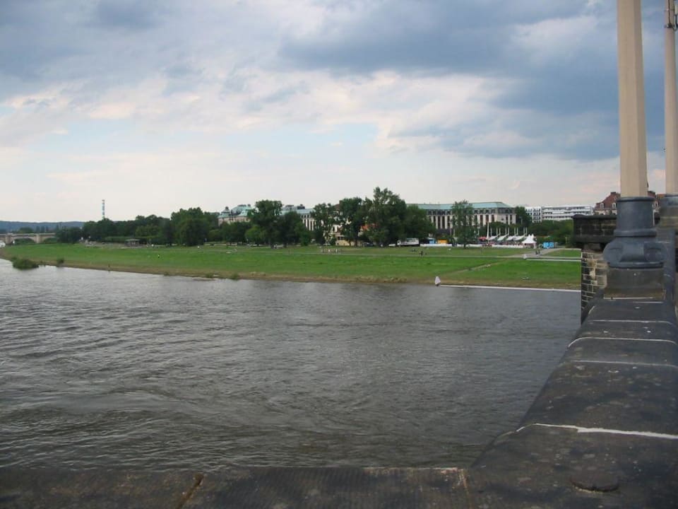 Von der Augustusbrücke aus, über die man in die historische Altstadt gelangt, sieht man im Hintergrund die Hotelanlage des Westin Bellevue.