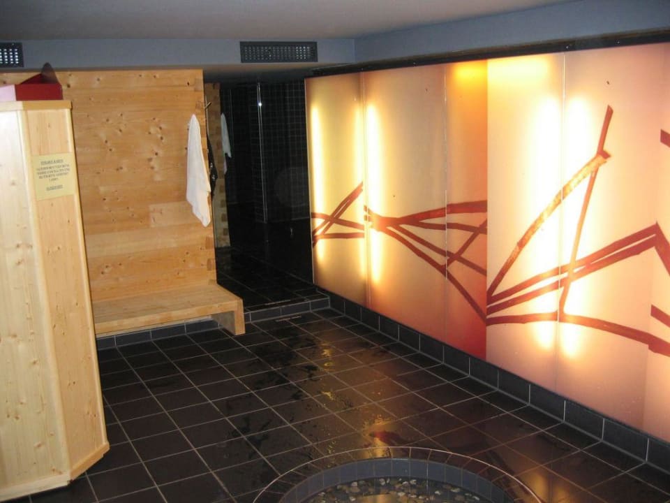 links Wärmekabine vorne Kieselbecken dahinter Sauna
