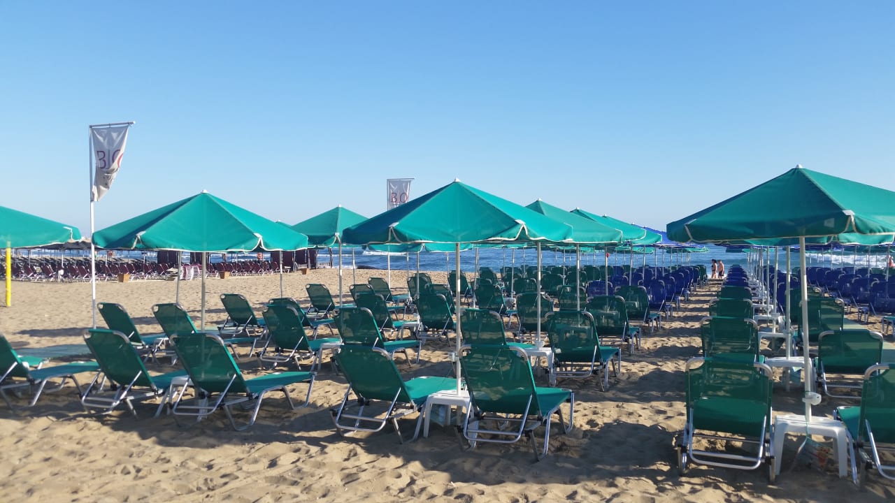 Hoteleigener Strand (6,-€ für 2 Liegen und 1 Sonnenschirm mit Hotelkarte).