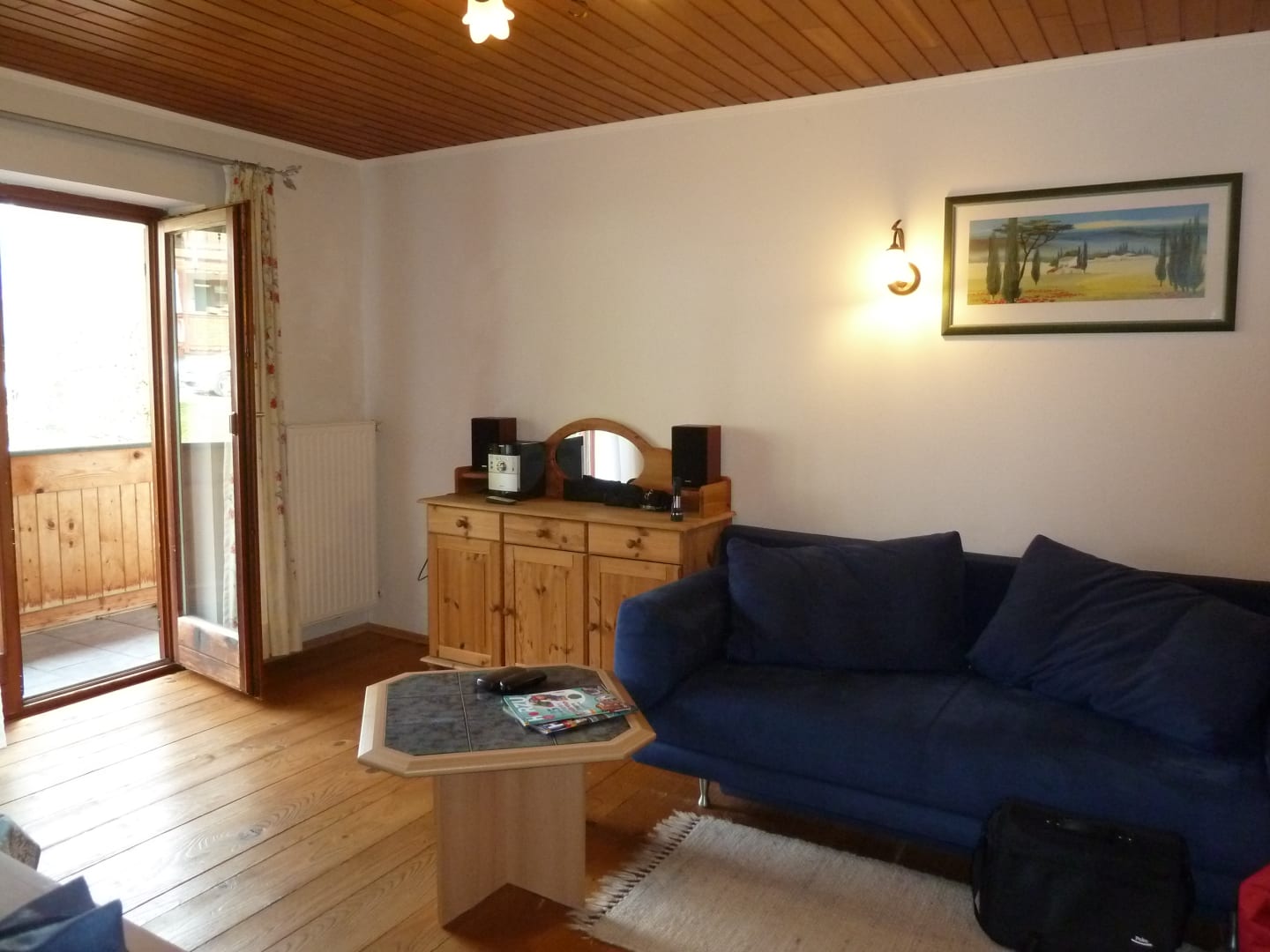 Wohnbereich mit Sofa, TV und Ministereoanlage