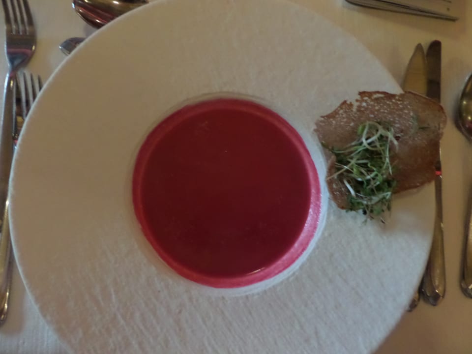 Sehr schönes Geschirr und toll angerichtete Suppe