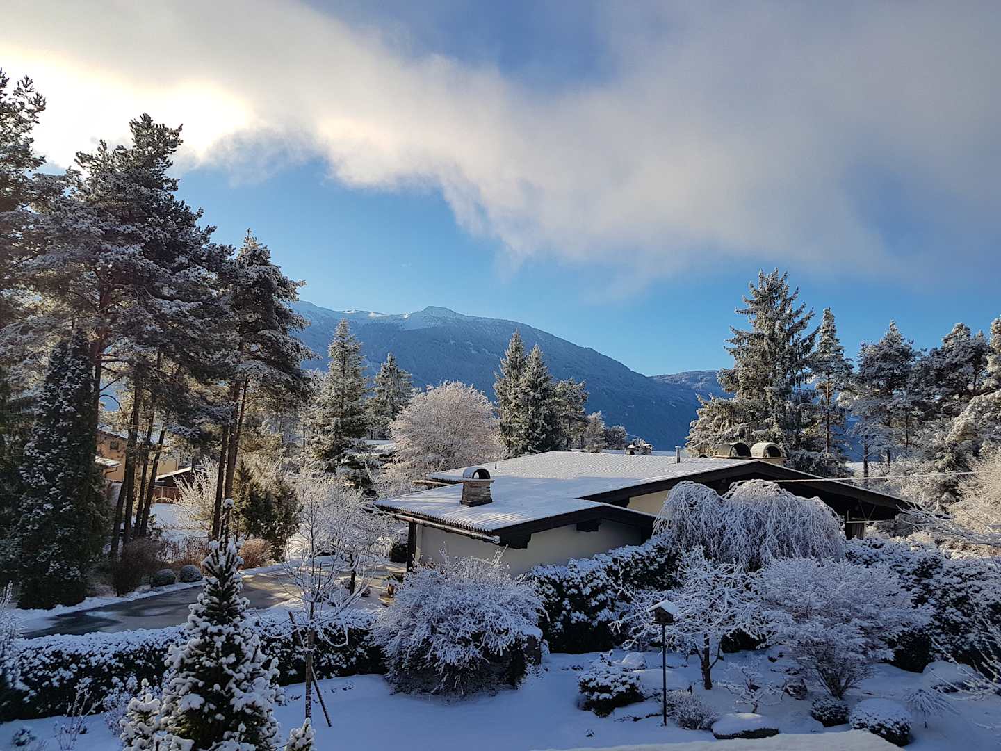 Blick aus einem der schönen Zirbenzimmer des Biohotel Schweitzer.
