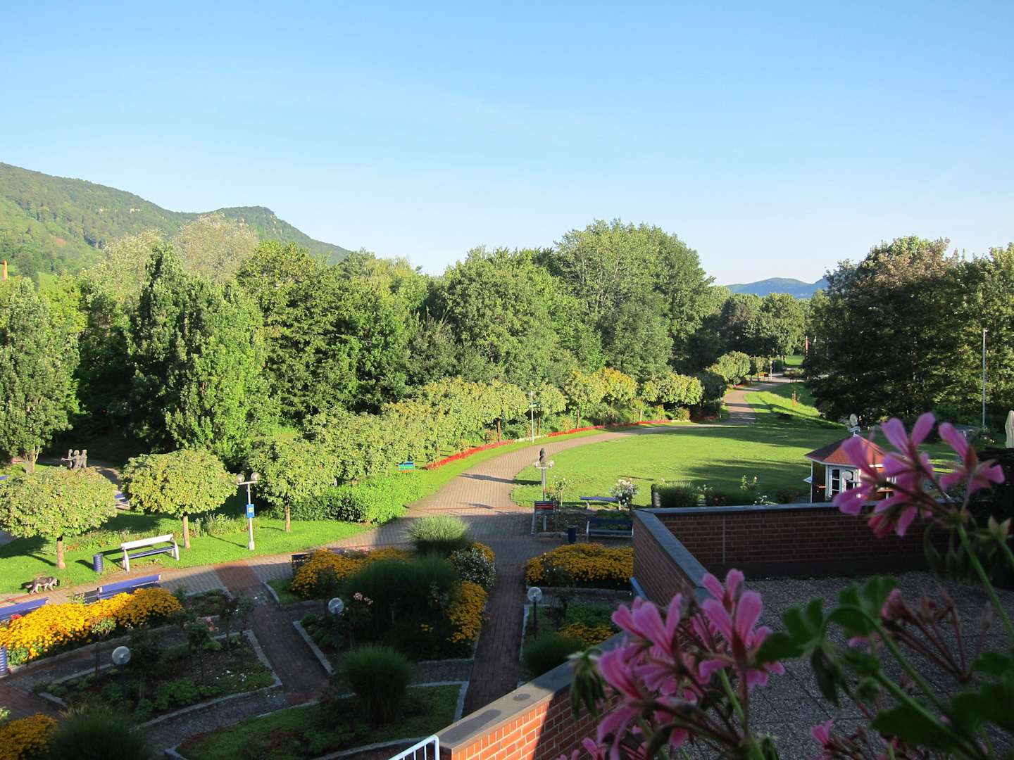 Vom Balkon aus in den Kurpark