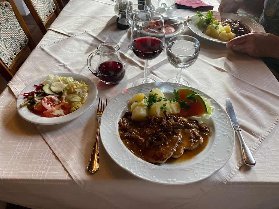 Abendessen mit lecker Rotwein.