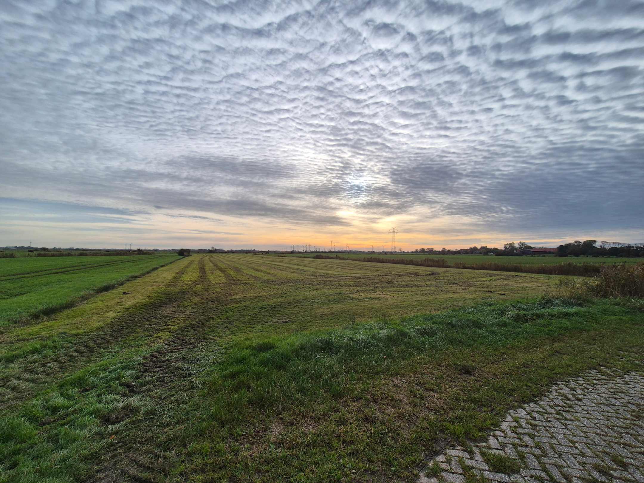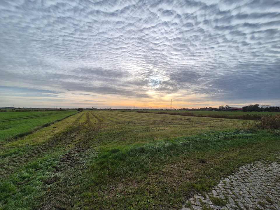 Morgendämmerung auf dem Feld gegenüber der Anlage