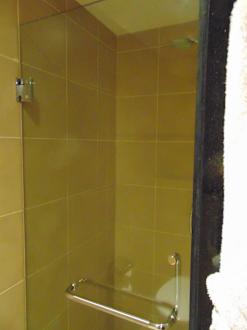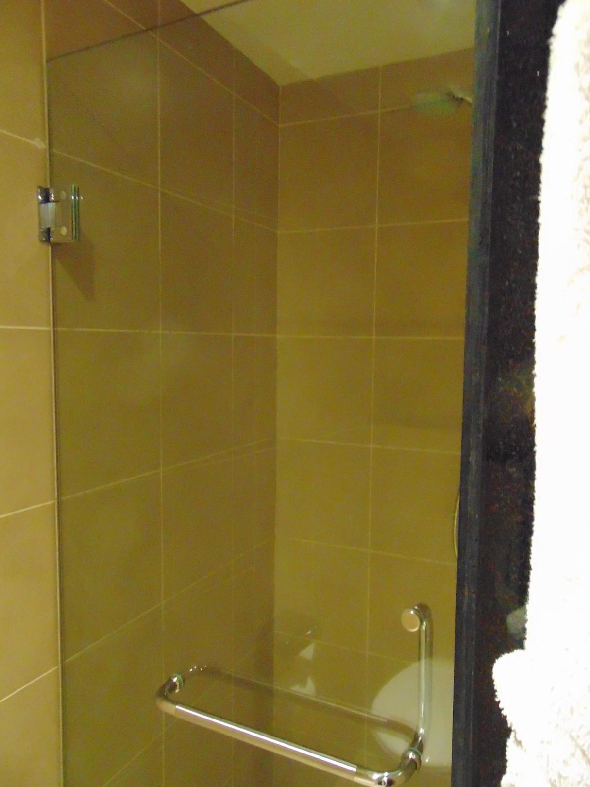ZimmerSehr enge Dusche, die auch nicht besonders gut beleuchtet ist.