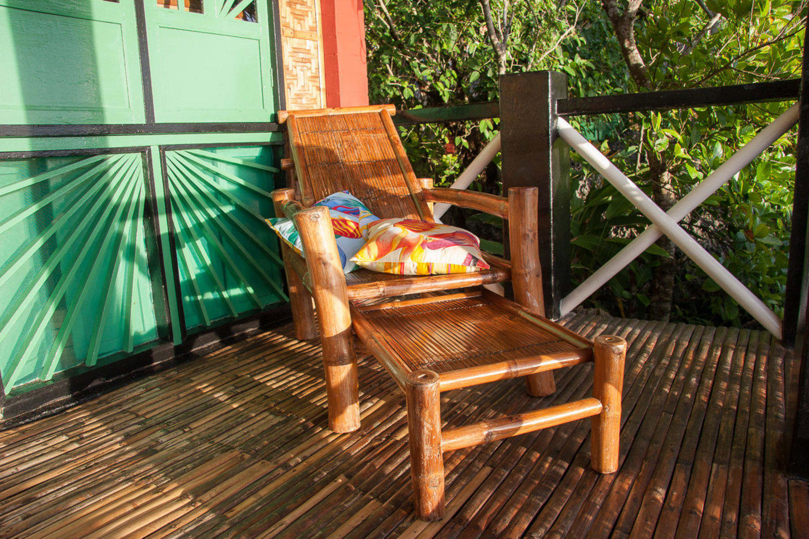 Großer Bambusliegestuhl direkt am Bungalow