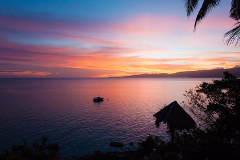 Sonnenuntergang direkt vom Bungalow über die Bucht