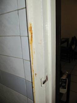Die Badtür war am Rahmen verrostet und das Türblatt sah aus als hätte sie Schrammen....nein... es war Dreck und Schimmel den man hätte ohne Mühe hätte beseitigen hätte können!
