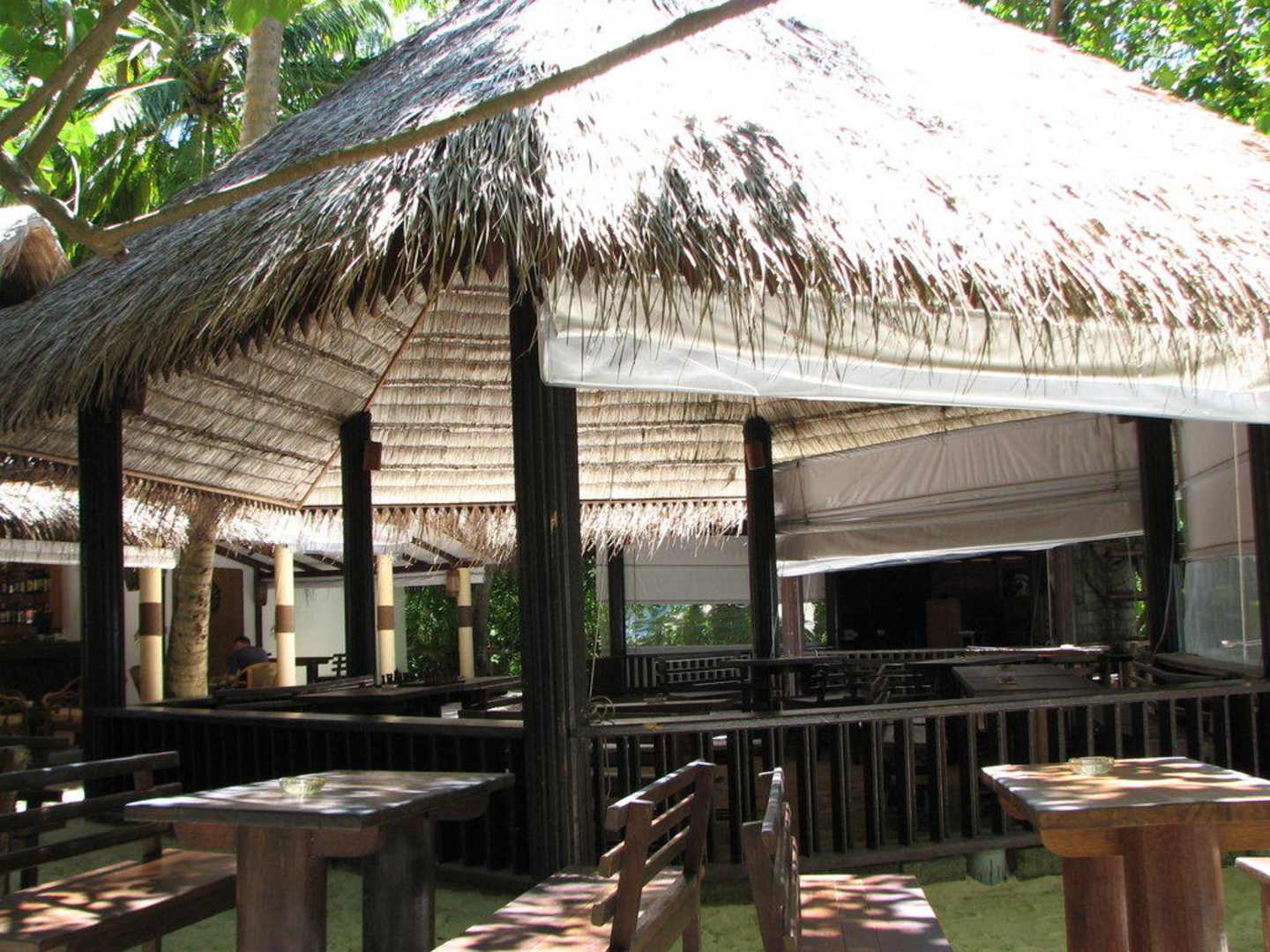 Aussenbereich des BarsAm besten einen Strandtuch als Sitzunterlage mitnehmen, sonst klebt man an der Bank