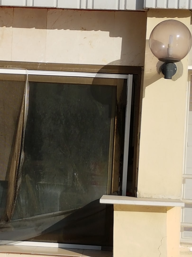 Küche von draußen kaputte und triefenfette fliegengitter