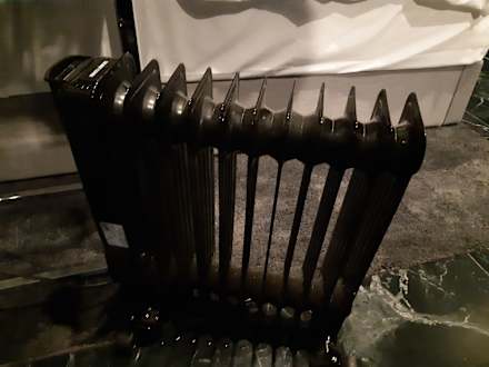 Der Radiator und die vielen beschädigten stellen im schwarz weißen Zimmer