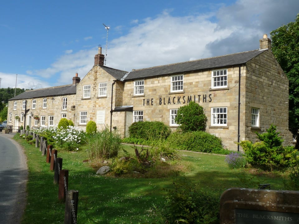 Hotel und Pub von der StraßenseiteIm Vordergrund ist die sehr ruhige Straße zu sehen, in den North York Moors National Park führt. Die Hotelzufahrt ist einfach zu finden: westlich kurz vor Pickering von der Hauptstraße nach Norden nach Wrelton und Hartoft End abbiegen.