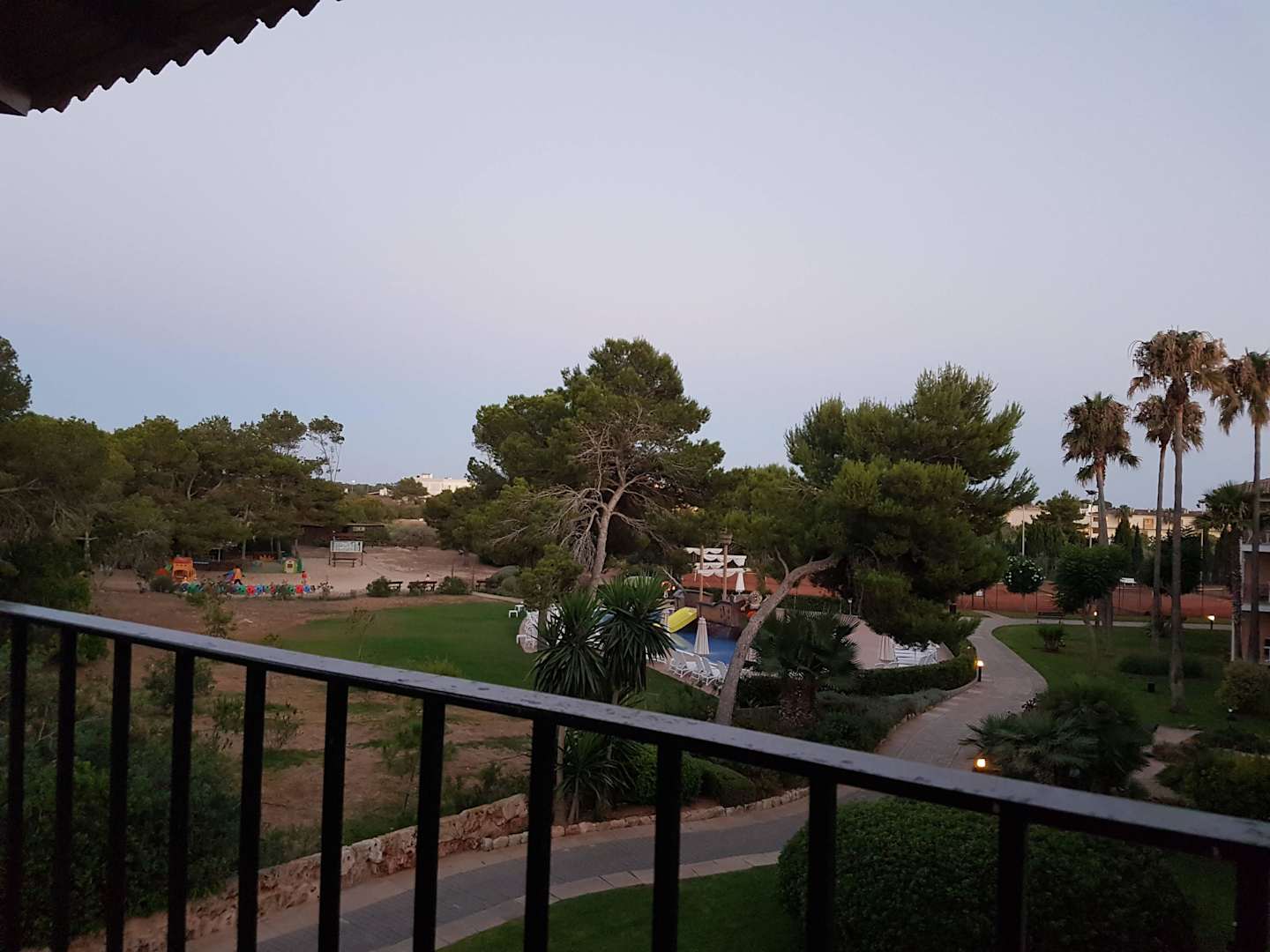 Blick vom Balkon (Haus 4) zum Kinderpool und Blaudiland