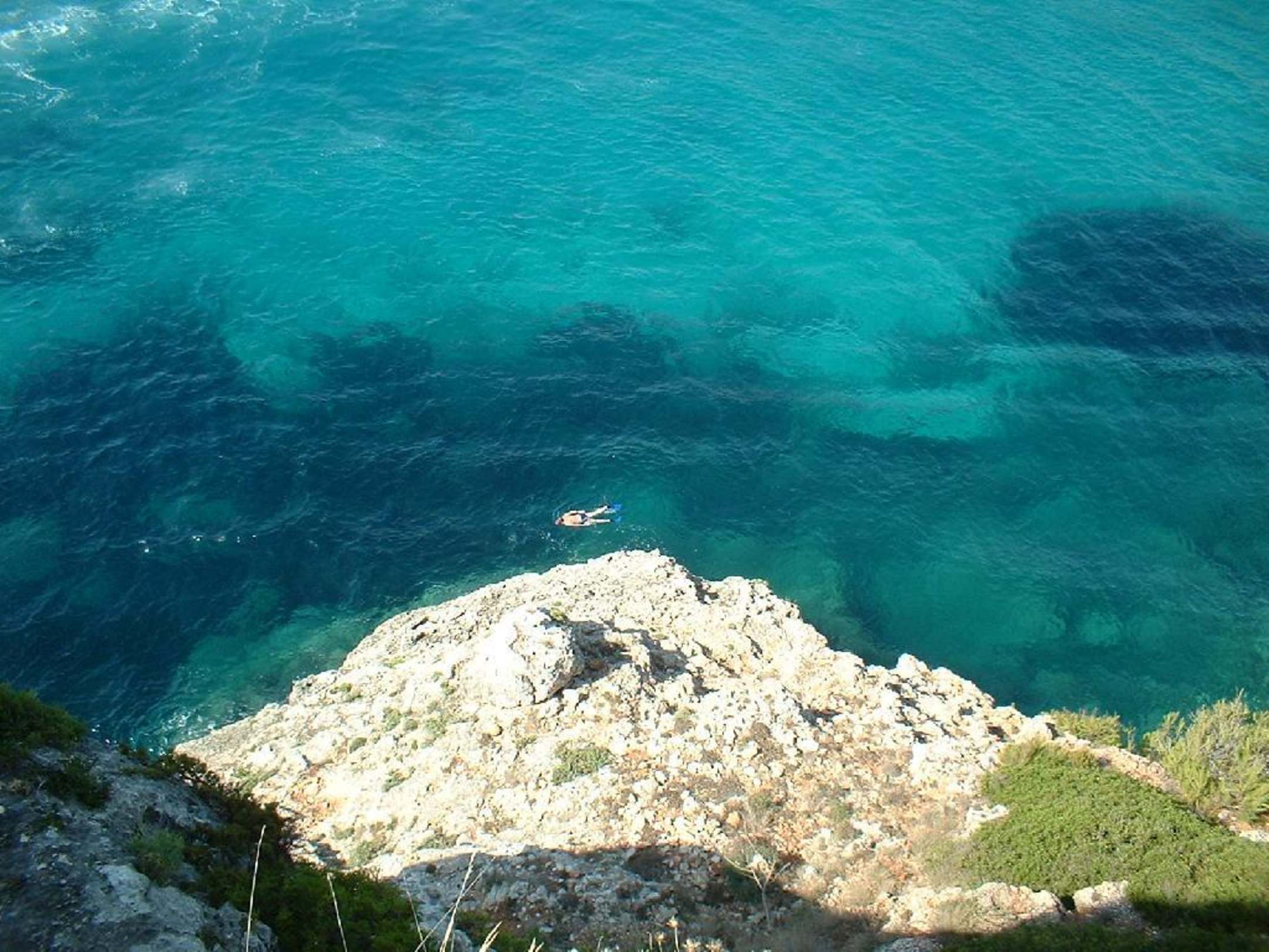 Ein " einsamer" Schnorchler Nähe Cala Romantica im kristallklaren Wasser.