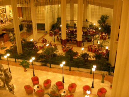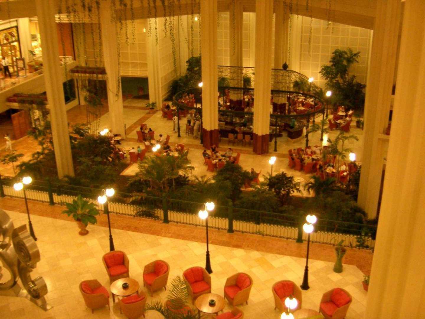 Hotelhalle ging über 3 Etagen. Hier von der oberen (wo auch die Rezeption ist) auf die Hauptbar in der unteren nach hinten ausgerichteten Etage.