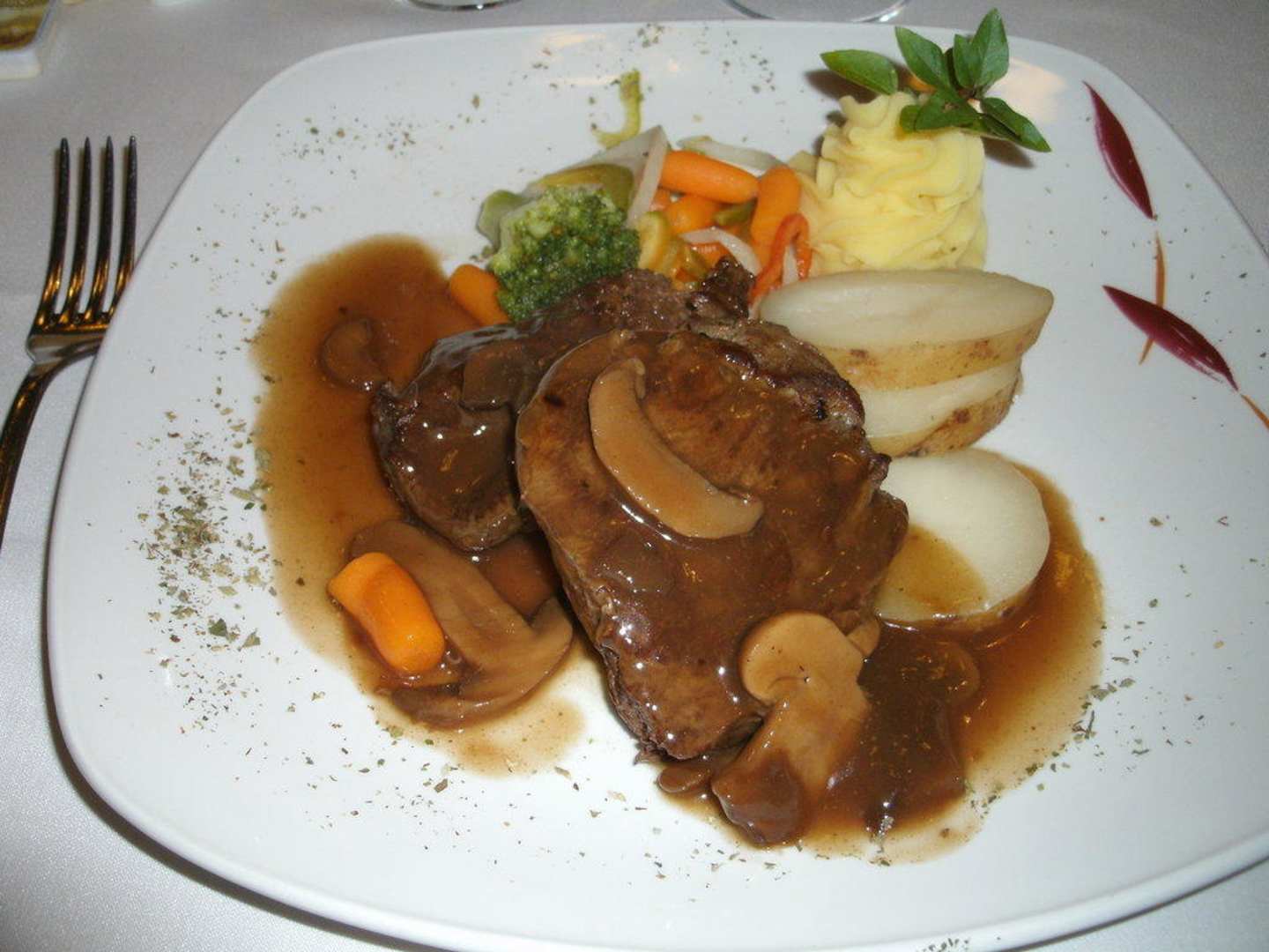 Tornedos mit Pilzsauce im International. Sehr lecker