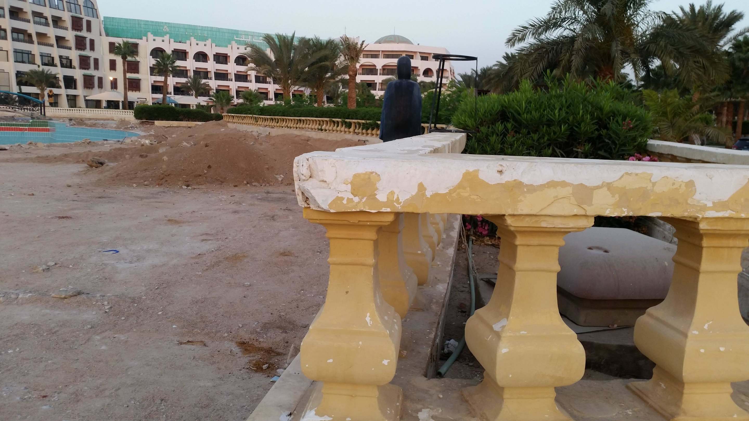 Pool ohne Wasser leeres Hotel im Hintergrund