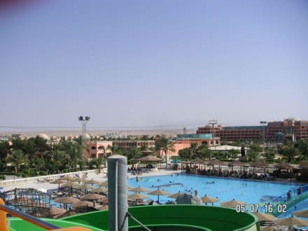 Ausblick von dem RutschturmHier der Ausblick vom Rutschturm oben. Das längliche Gebäude auf dem Bild ist das Hotel Paradise dahinter liegt der Club.