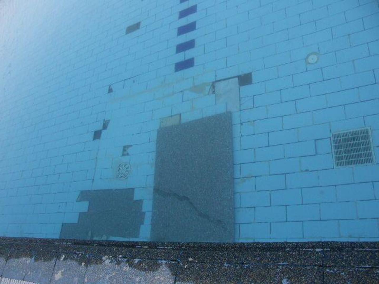 Basen przy aqua parkuOdpadające płytki na dnie basenu