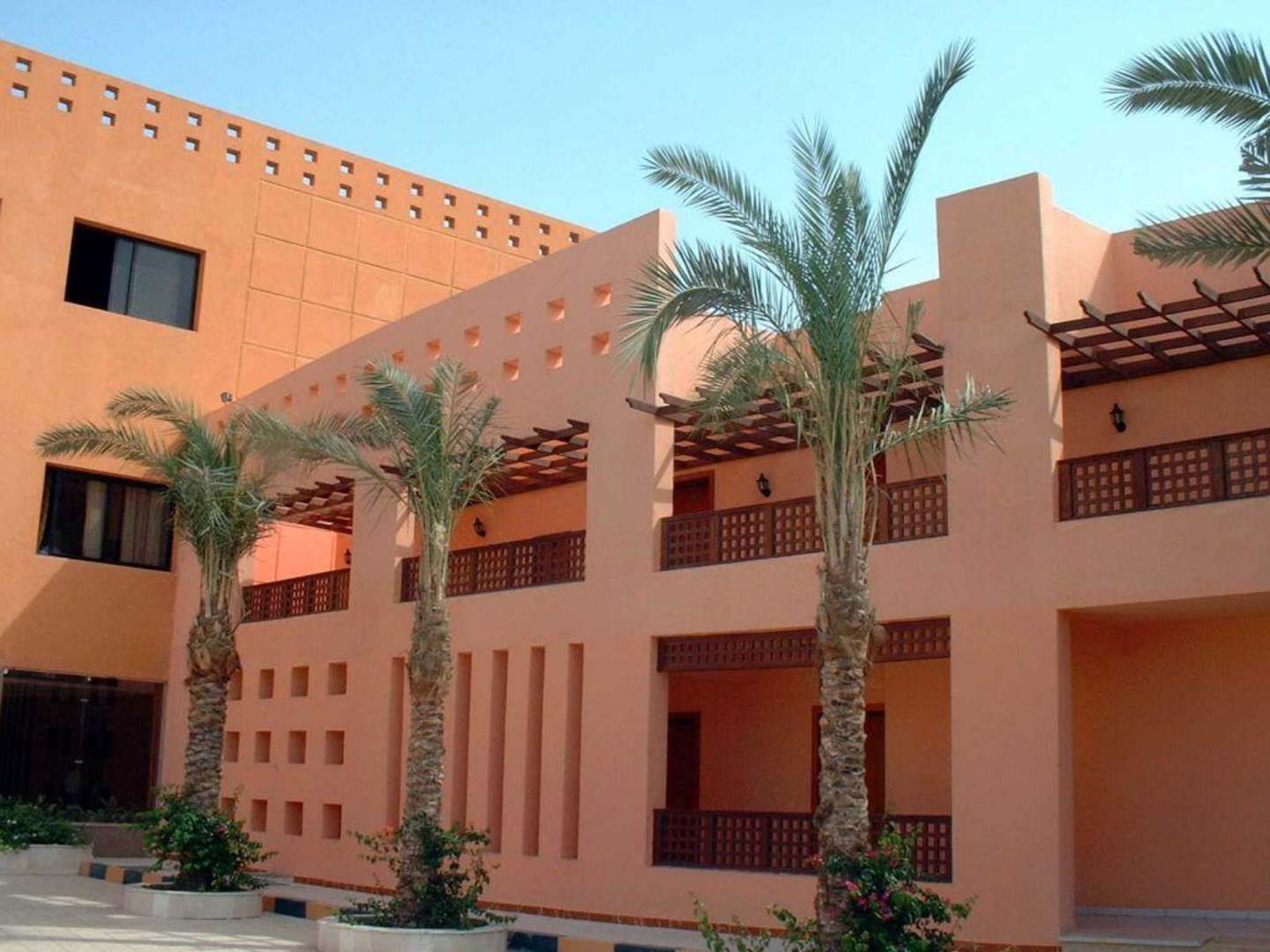 HotelansichtAuf dem oberen Gang hinter dem zweiten "Fenster" von rechts unser Zimmer.
