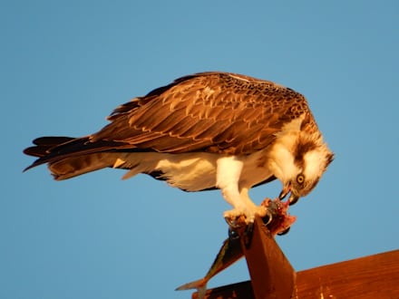 Sonstigesein Seeadler verspeisst sein Frühstück auf dem Hoteldach "Jolie Beach"