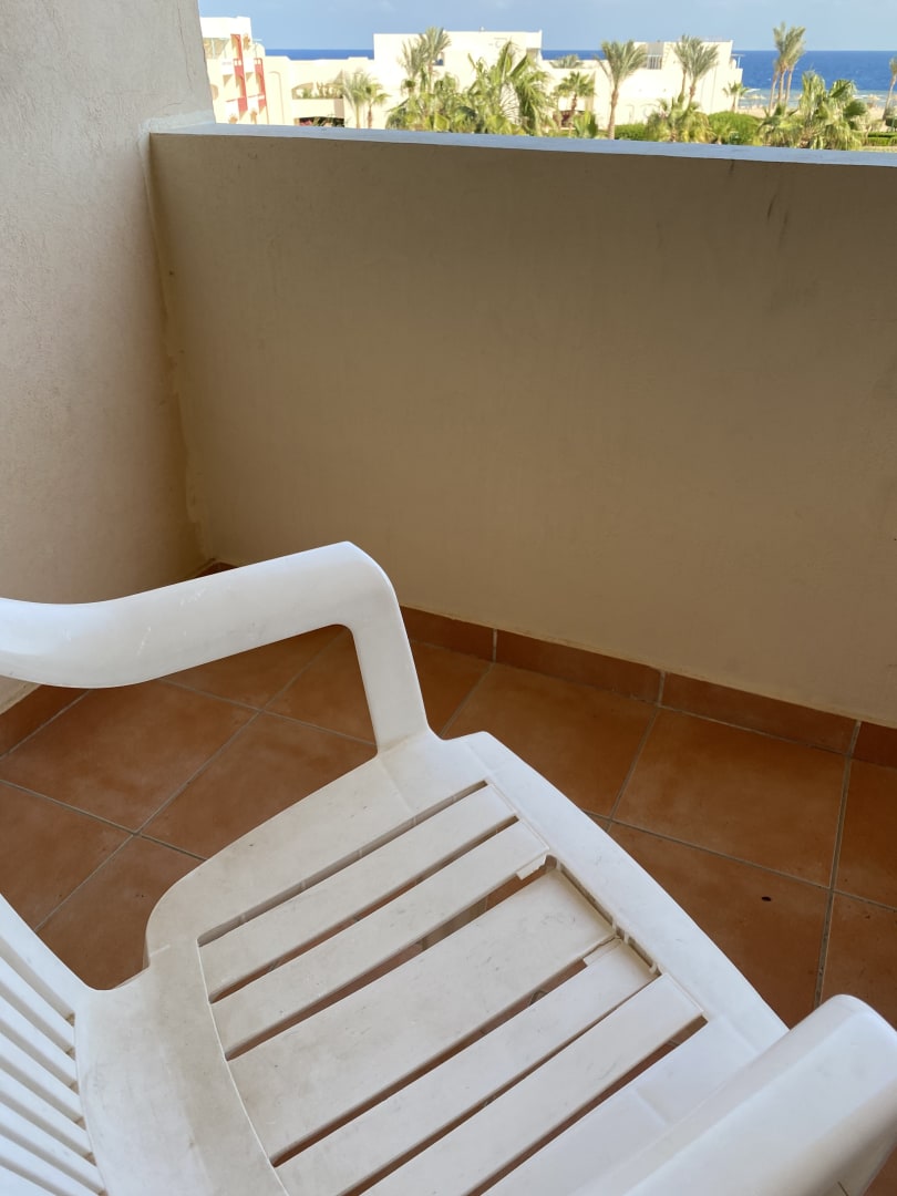 Balkon mit defekten Stühlen, ein 4 Sterne Hotel