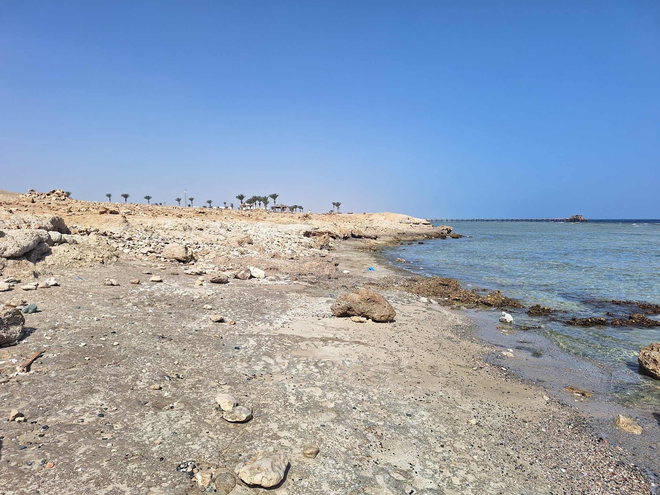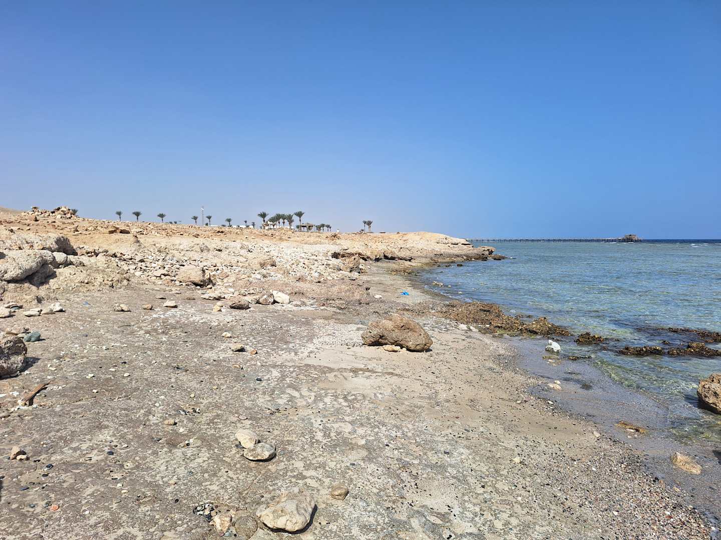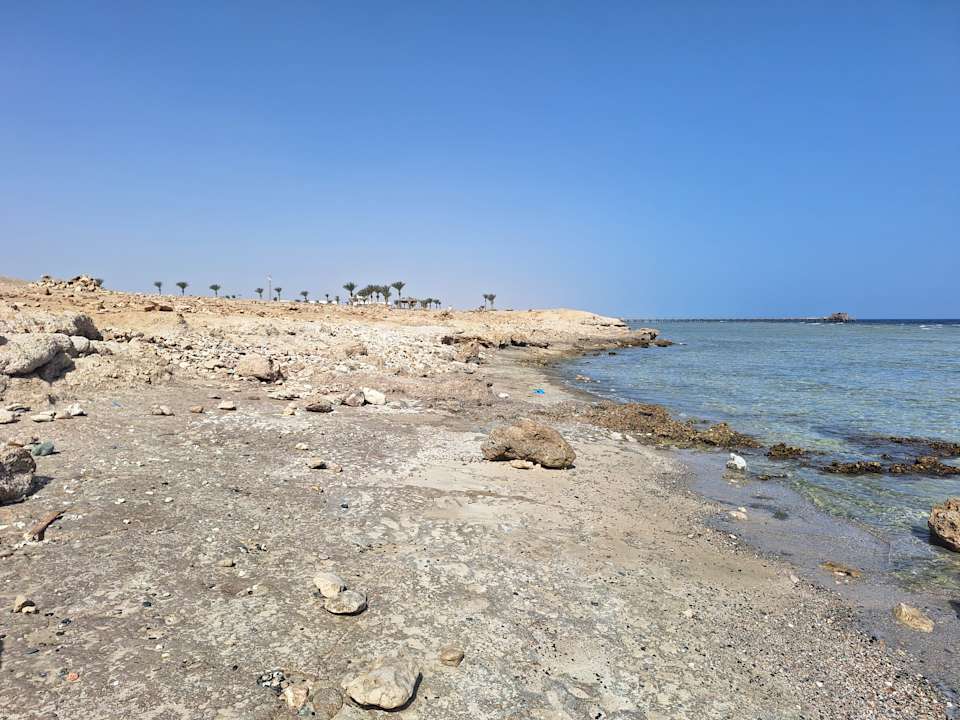 Das ist der Ausblick von der Ferne. Der Strand direkt vorm Hotel ist mit Sand und Strandliegen und -schirme, durch den steinigen Untergrund und Korallen im Meer, ist dieses nur über einen Steg mit Life Guard zugänglich