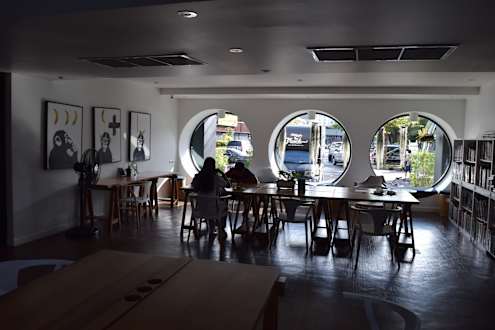 Co Work Space mit Bullaugen zur Straße hin