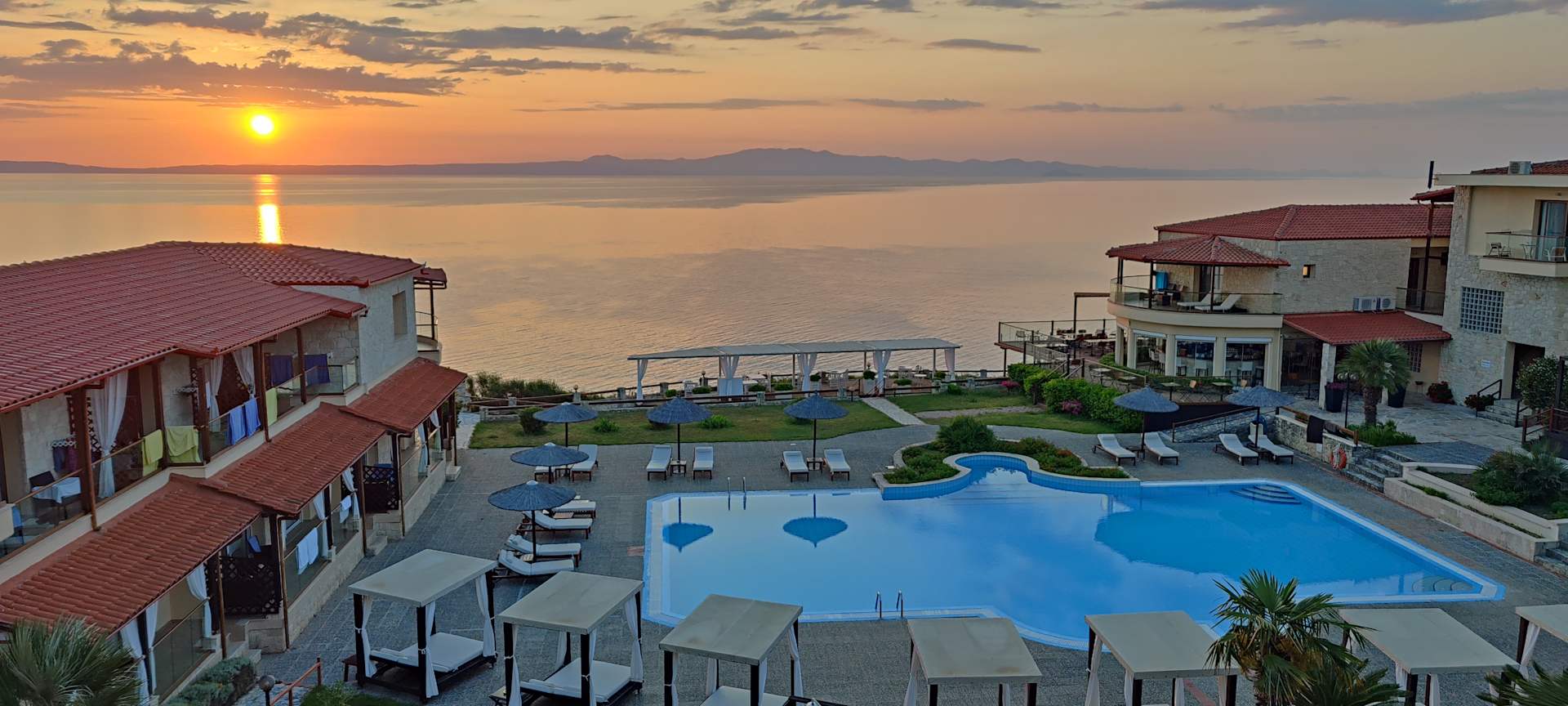 Das Hotel bei Sonnenaufgang.