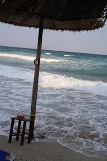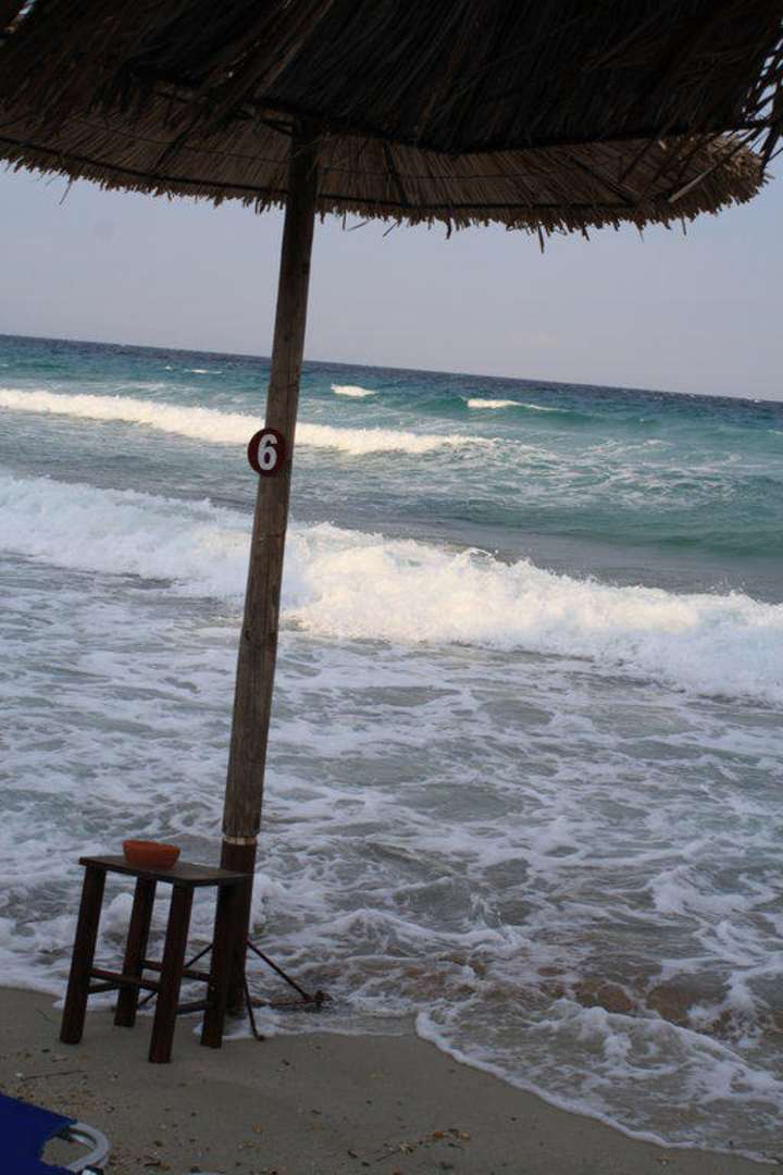 Das Strandmobilar der Strandbar wird vor dem Gewitter gut geflutet.