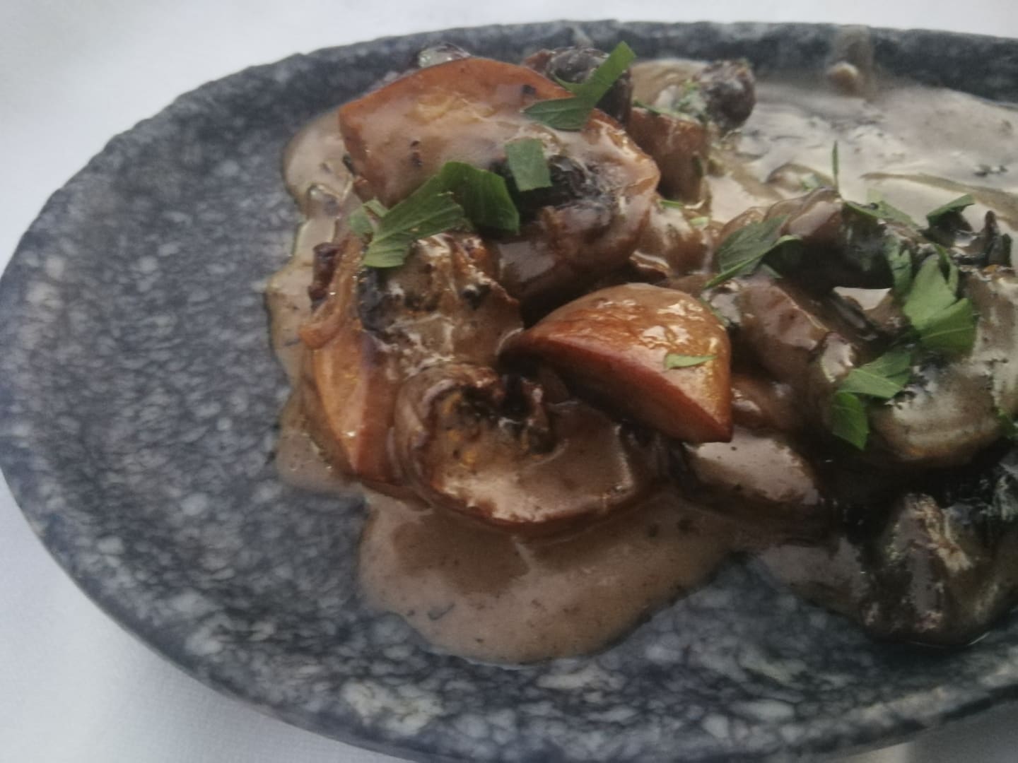 Hauptgericht ital. A la carte Restaurant, auf Plastikteller