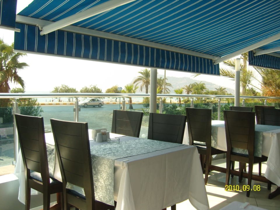 Die Terrasse vom Speisesaal,mit Meerblick.Sehr schön