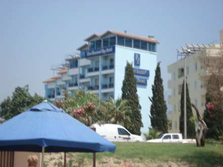 Blick vom Strand auf das Hotel