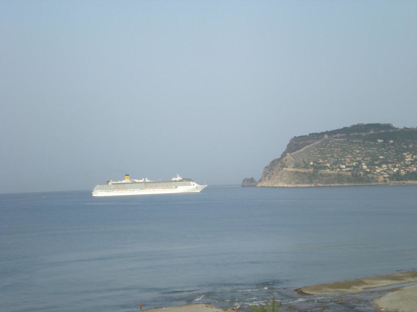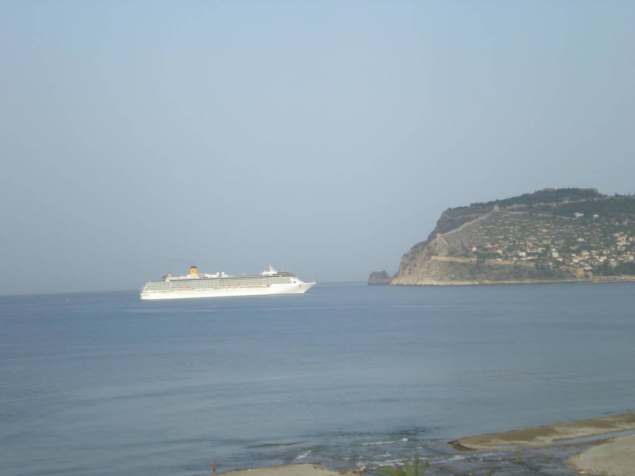 Ein Schiff der Costa Flotte fährt in den Hafen von Alanya ein.