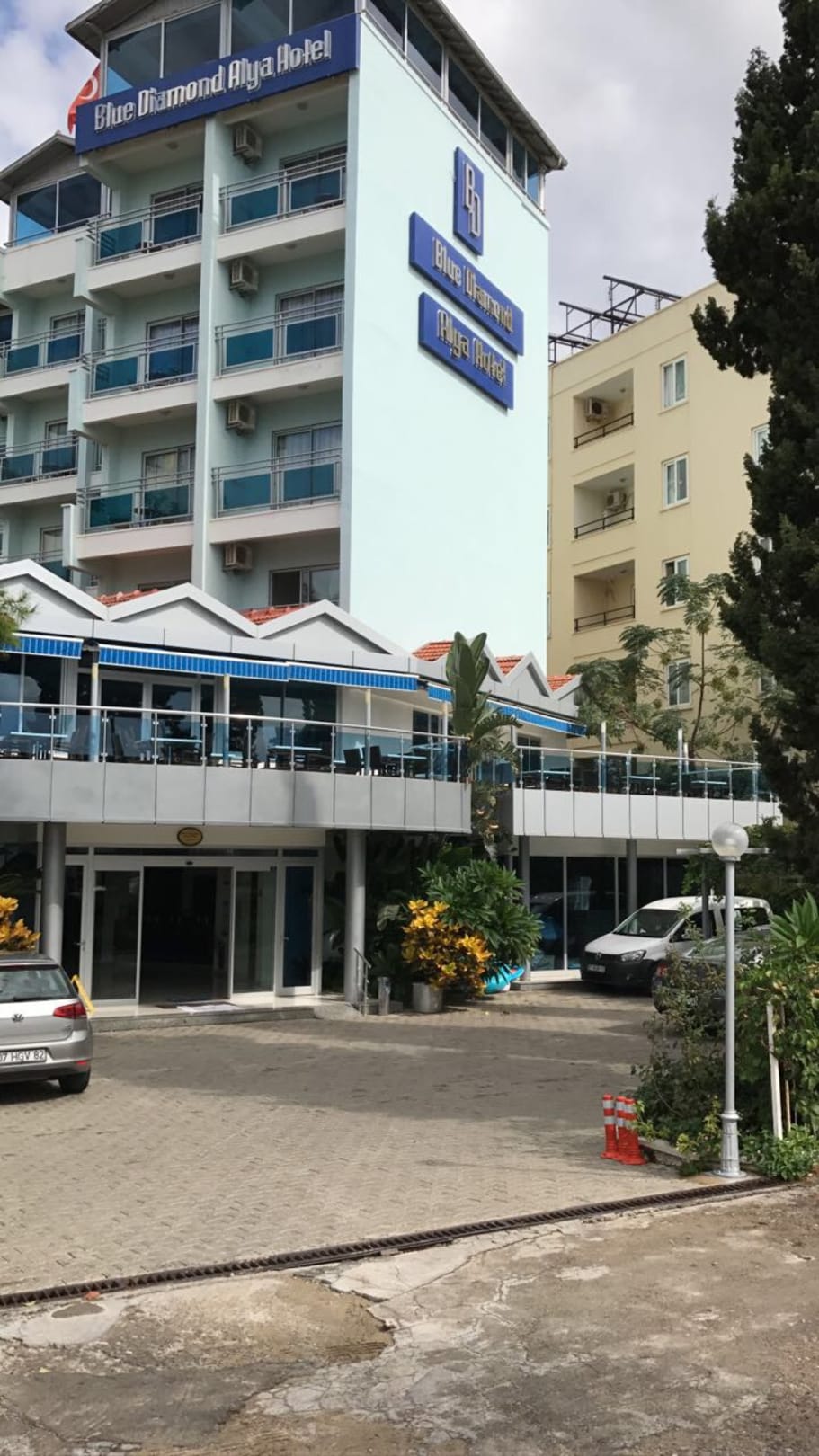 AußenansichtIm ersten Stock befindet sich das Restaurant von dem man ein super Aussicht auf das Meer hat ! Alle Zimmer haben Meerblick 😍😍