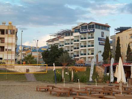 Blick vom Strand aufs Hotel