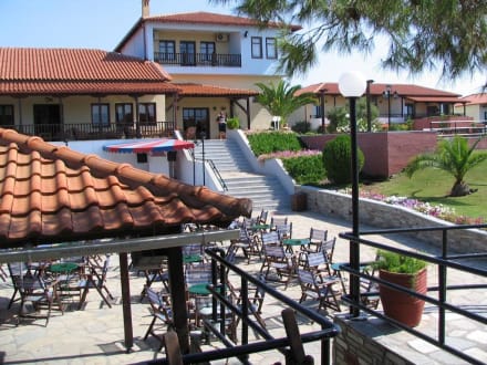 Blick von der Bar des Hotels auf das Rezeptionsgebäude.