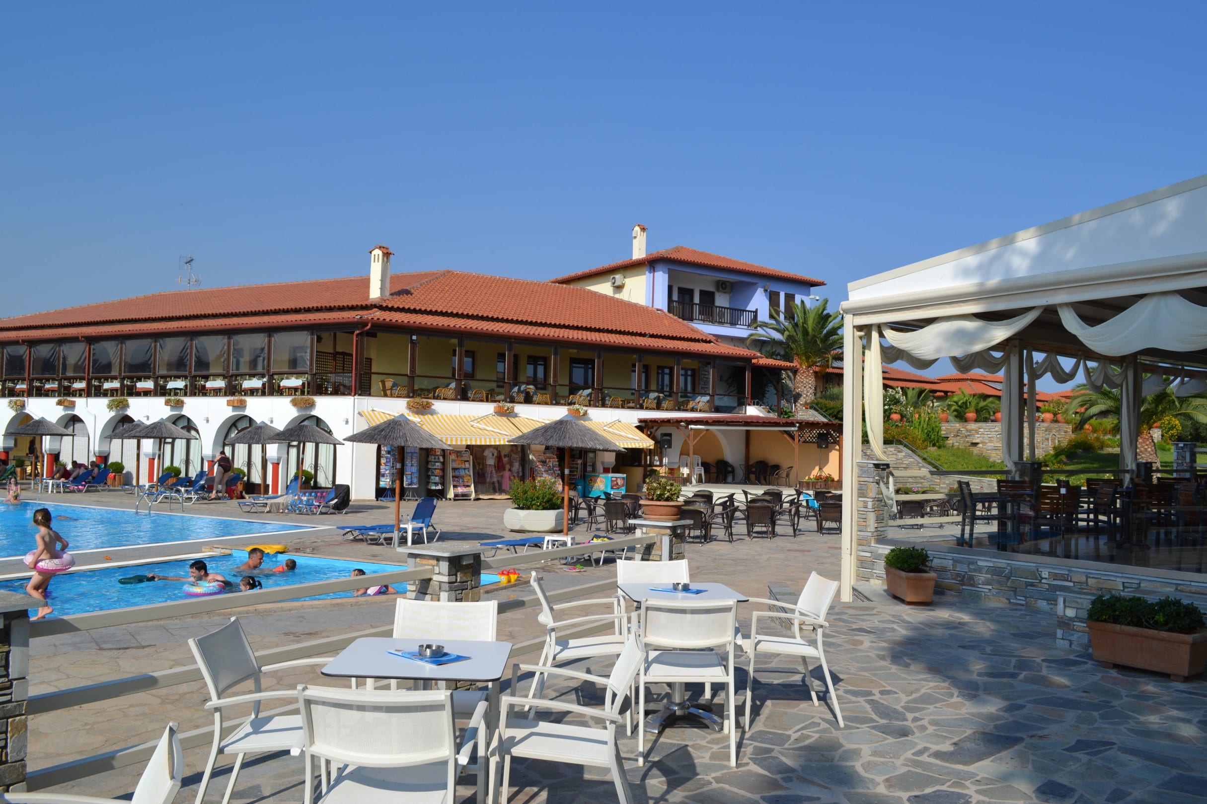 Restaurantgebäude und Supermarkt