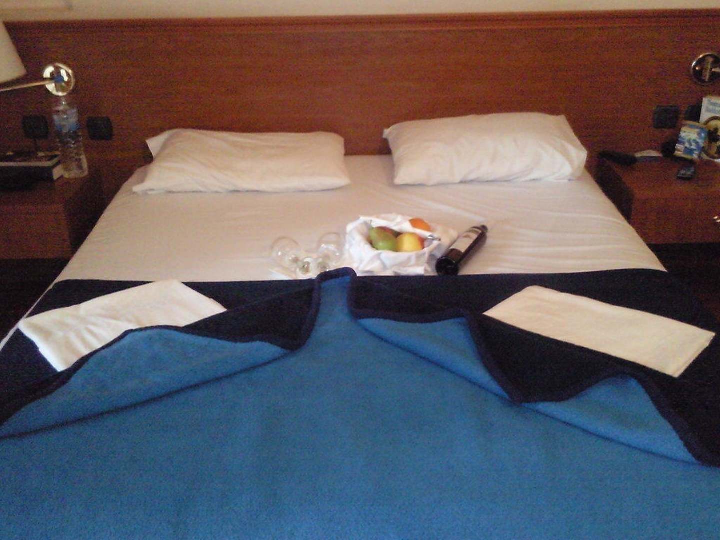 DankeschönWir bestanden auf unseren Holidaycheck Obstkorb der uns von Holidaycheck zugesagt wurde und tadaaa da ist er mit einer Flache Wein!