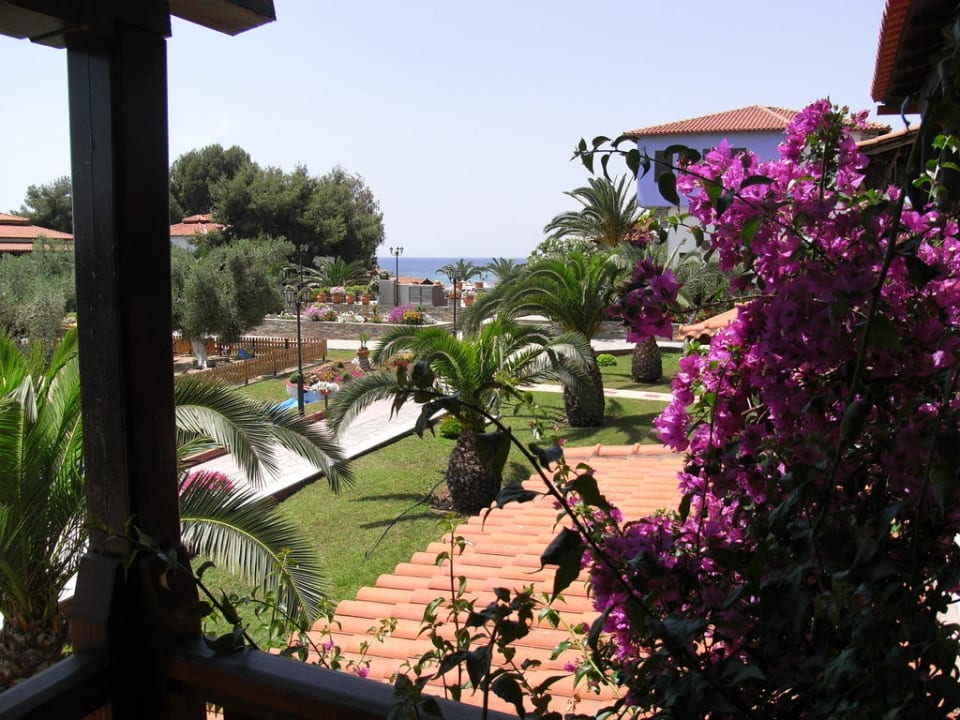 Vom Balkon nach rechts über Pool