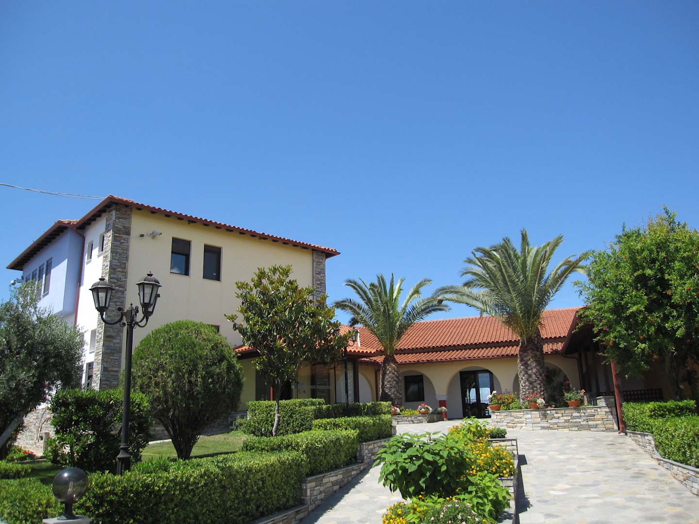 Eingang zur Rezeption (links) und Restaurant (re.)