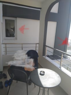 Balkon mit Einsicht für jedermann. Keine Privatsphäre.