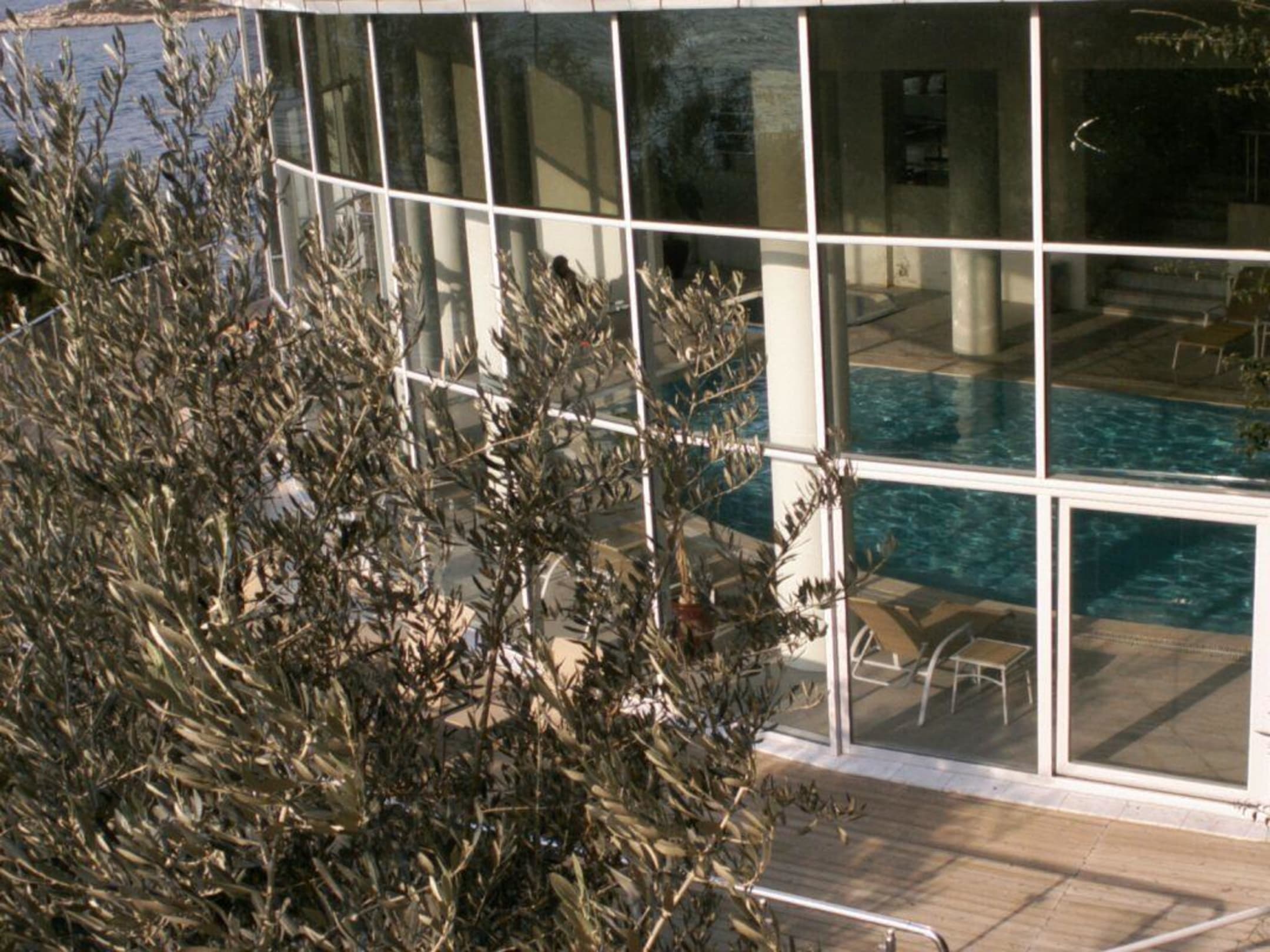 HallenbadInnenschwimmbad mit Meerblick, daneben Hammam, Sauna, Fitnessraum und Kosmeticsalon.