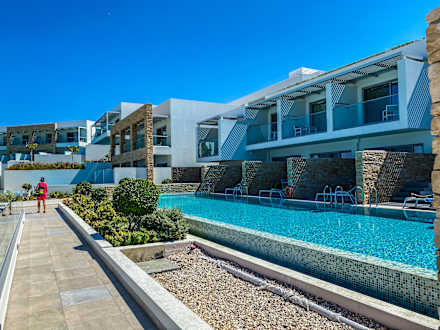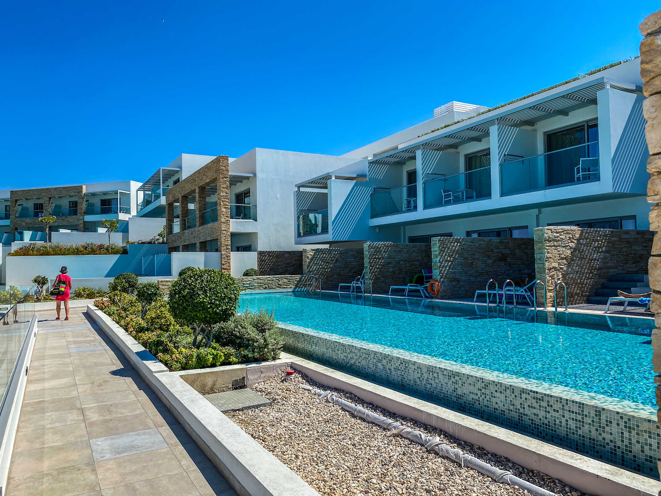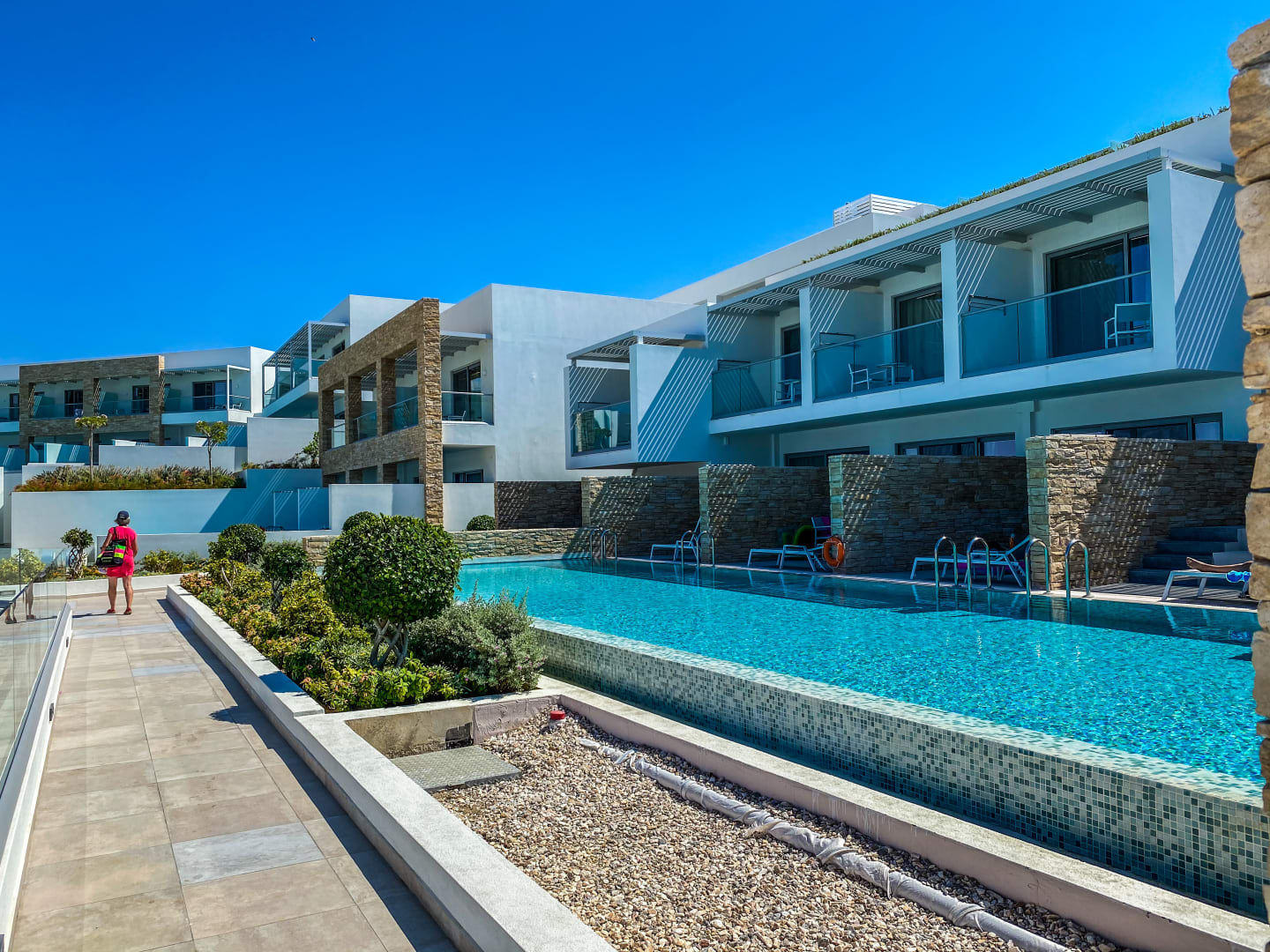Blick auf private Poolbereiche von angeschlossenen Zimmern